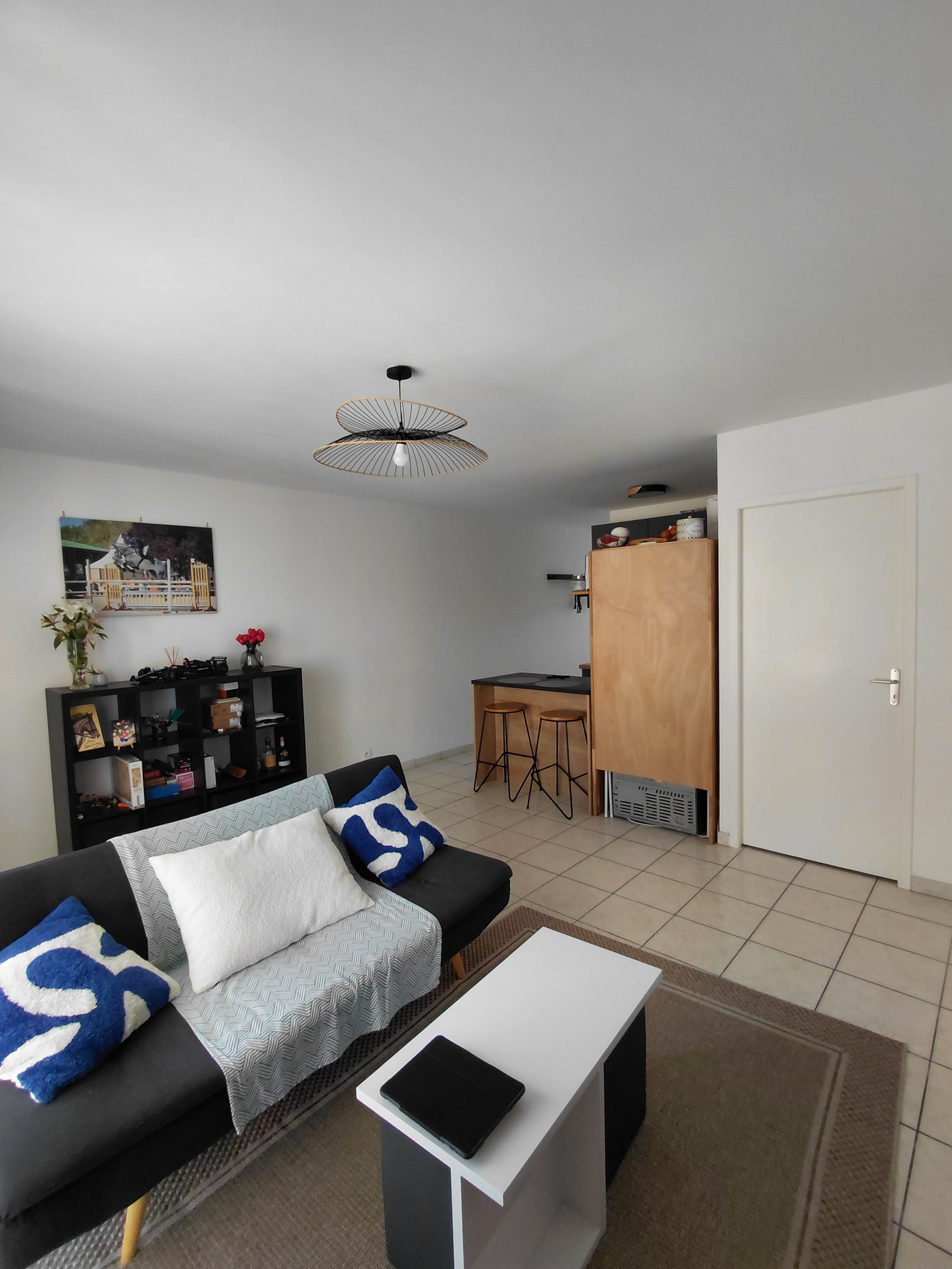 Une maison de 1997 comprenant : entrée, séjour donnant sur jardinet, cuisine ouverte partiellement aménagée, cellier, dressing, chambre avec placard, salle de bains et WC indépendant.